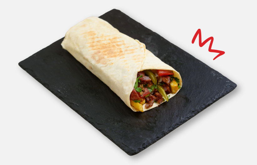 Pork meat, spicy peppers, tomatoes, fries, greens, ketchup, mayonnaise, sauce, loshik