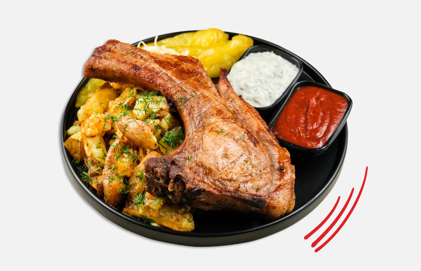 Մատուցվում է ճմուռ կարտոֆիլով, թթվով ու սոուսներով: