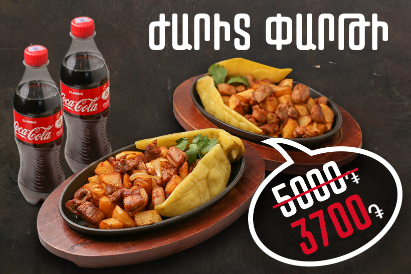2 բաժին խոզի տապակա կարտոֆիլով, 2 հատ 0․5լ կոկա-կոլա ընդամենը 3700 դրամով՝ 5000 դրամի փոխարեն: