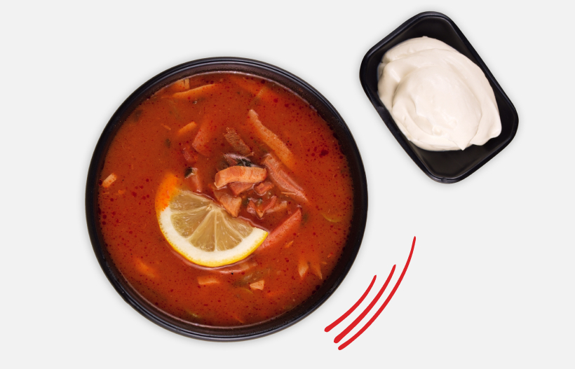 Տավարի միս, նրբերշիկ, խոզապուխտ, երշիկ, մարինացված վարունգ, կապար, ձիթապտուղ, կանաչի, կիտրոն + 2 կտոր հացիկ, թթվասեր
